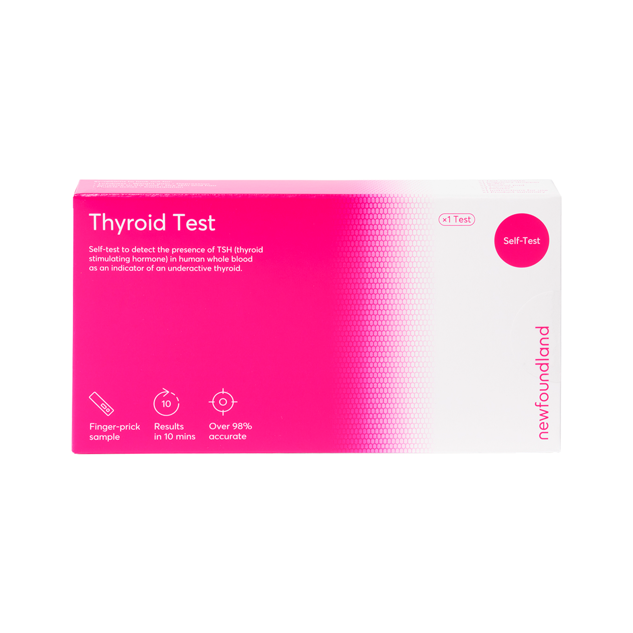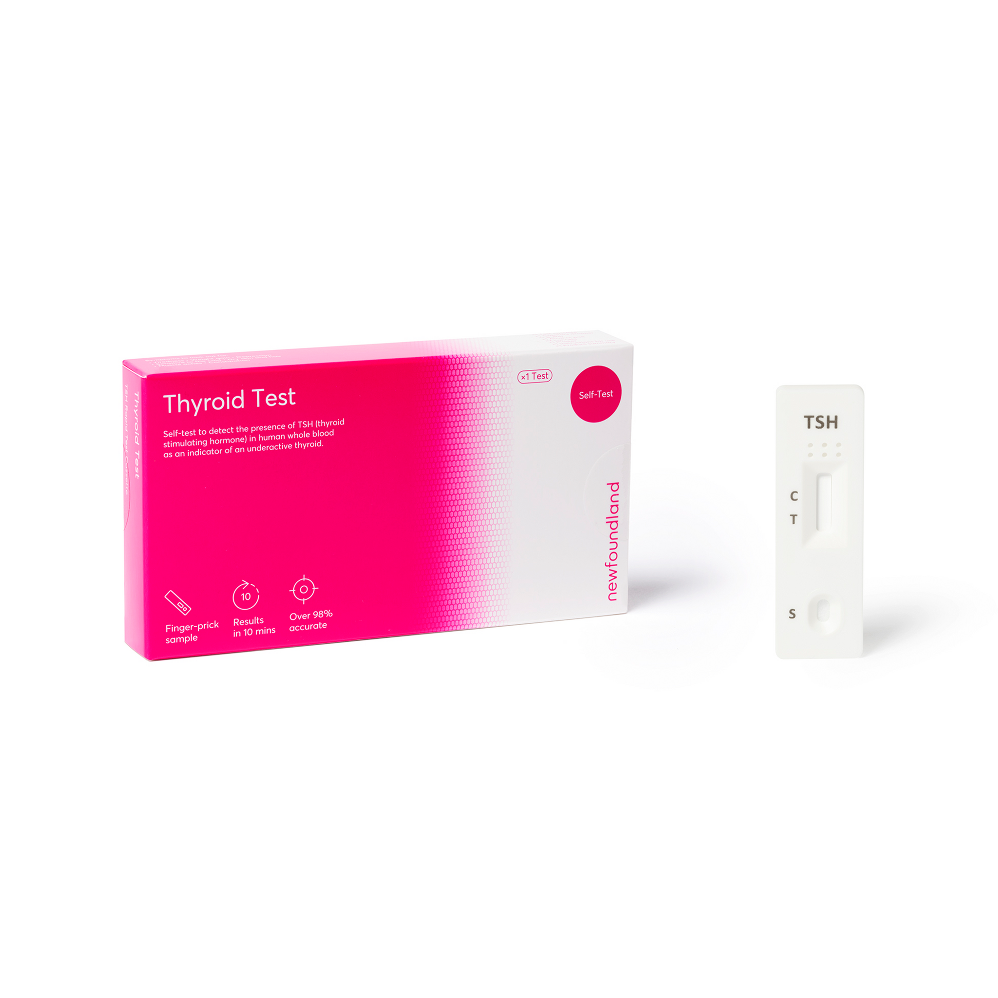 At-home self-test to detect the presence of TSH (thyroid stimulating hormone) in blood as an indicator of an underactive thyroid.