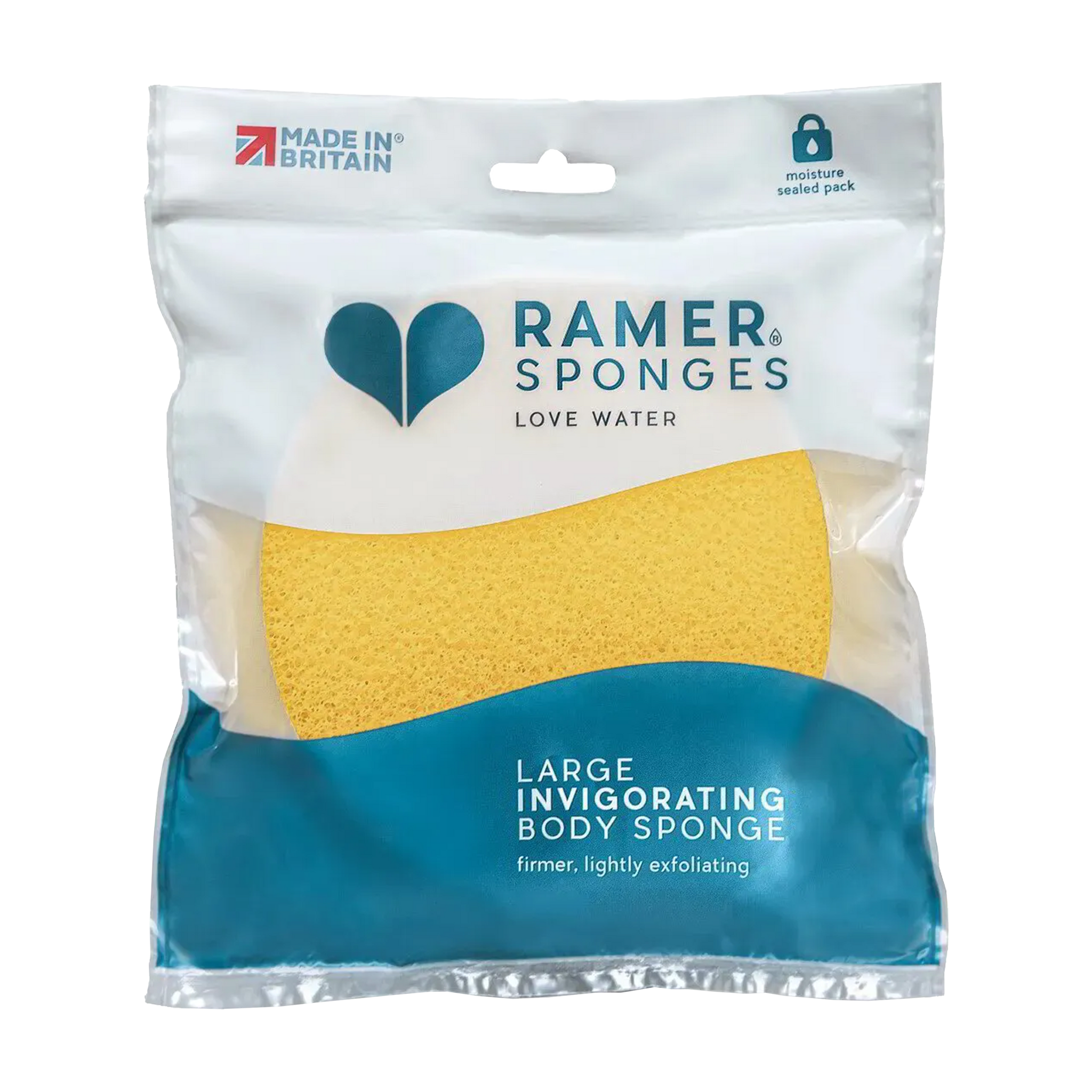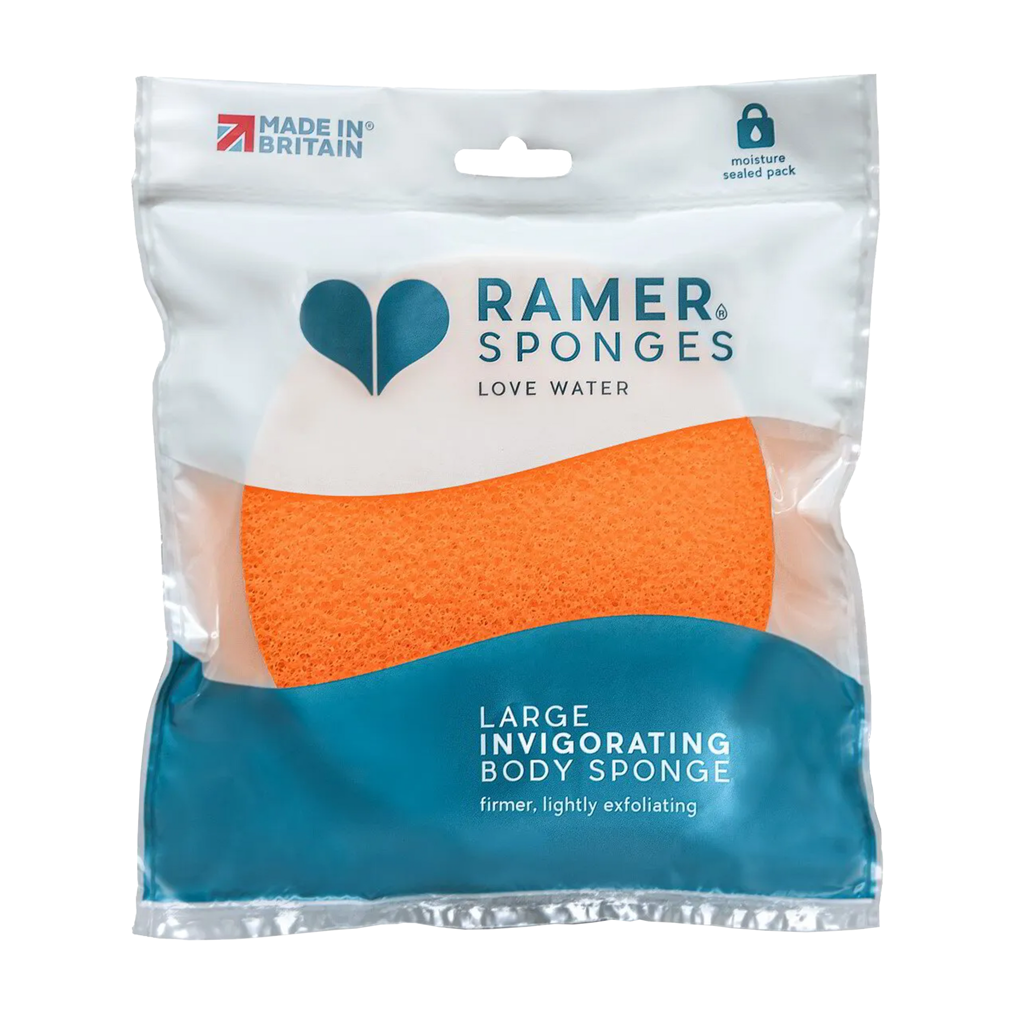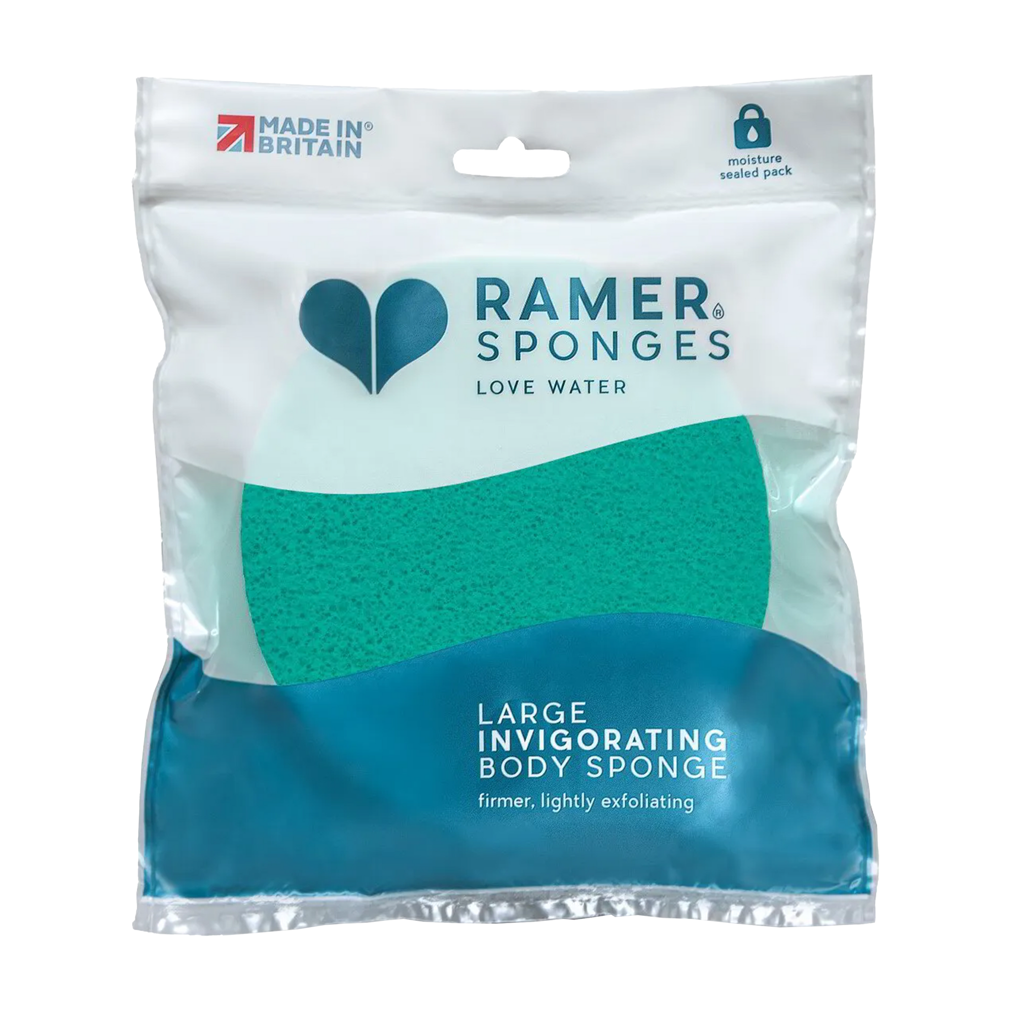 The Ramer Large Invigorating Body Sponge – A firmer sponge which lightly exfoliates for a truly revitalising experience. Measuring approximately 130mm x 115mm x 38mm, it's perfect for prepping the skin ahead of self-tan application, offering a firmer texture for gentle exfoliation.