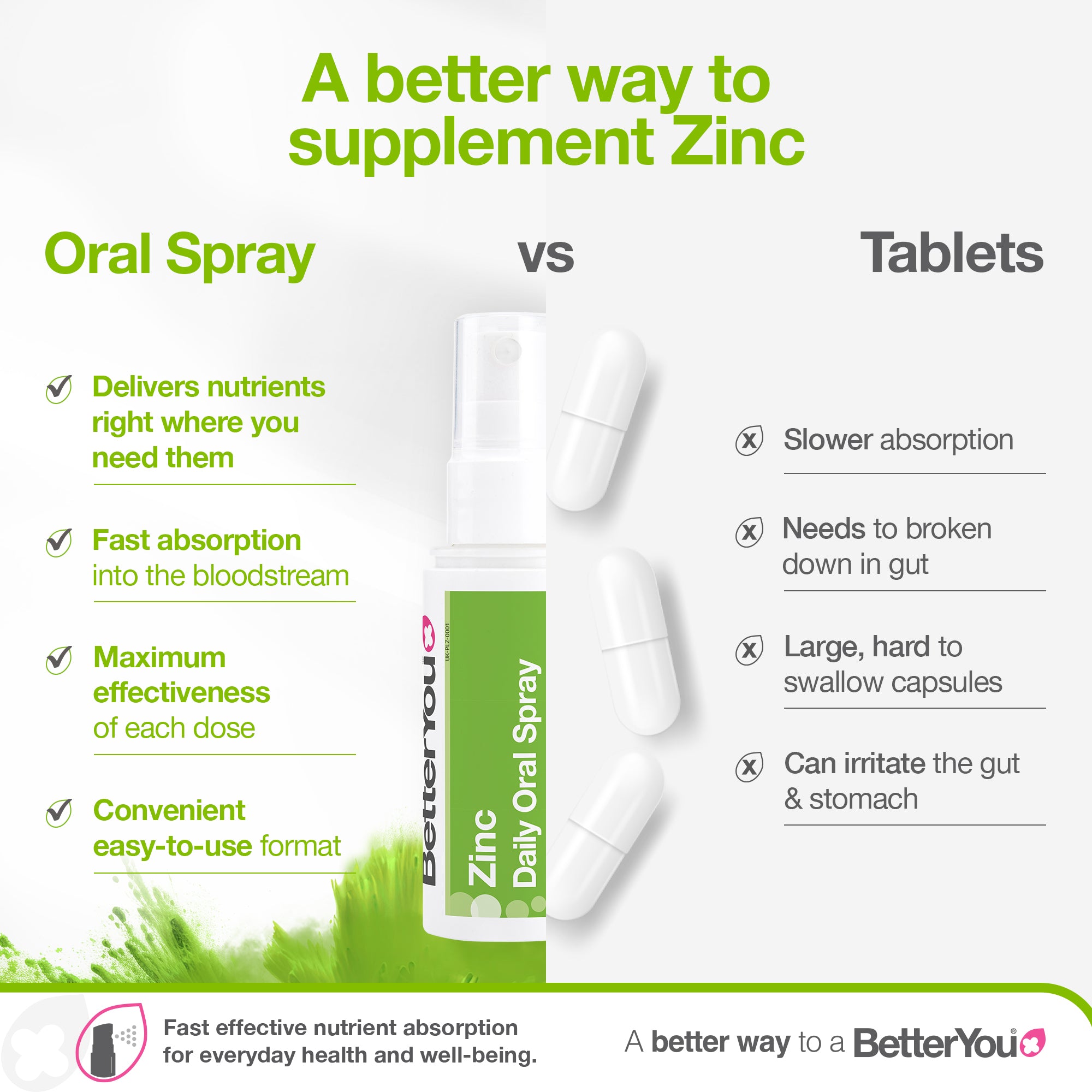 Clinically proven absorption - The nutrients are quickly absorbed through the buccal membrane in the inner cheek and directly into the blood stream, where they can get to work straight away.